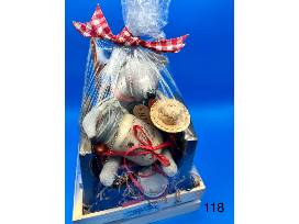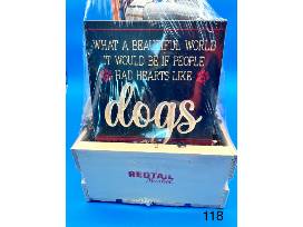 2 wooden signs, mouse doll, doll chair, candle and lid, and napkins