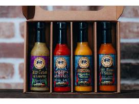 This four bottle sauce sampler from Bear River Bottling is built for those who prefer their fire to feature a savory flavor. This fourpack offers you the complete set of Dr. Scoville's savory heat flavors including the low-heat, high-flavor of the Green Canyon Fire Roasted Verde, the tangy garlic twist in Lightning Hot Buffalo, the daily-driver Habanero Wonder Tonic, and the award-winning honey-bacon heat of the King of Sting.