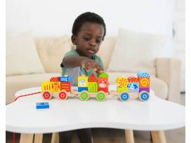 -Stacking Train: Colorful wooden block stacking train with a pull string for endless fun and adventures.