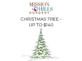 Get in the spirit with a Christmas tree from Mission Hills Nursery (up to $140 value)! Mission Hills Nursery offers year-round workshops, events, and flora that elevate your space and creativity. Select a gorgeous tree and support an SPS family owned and operated business!