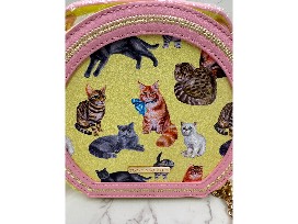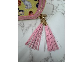 Poppy Angeloff Cattitude Tassel Purse Cotton candy pink and soft yellow crossbody bag made from soft faux leather.