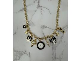 Not your childhood charm necklace! This handmade Frannabella Beads charm necklace is made of 18K gold plated oval link chain with 9 charms. Necklace measures 18"