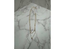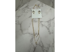 Gold crystal drop earrings in white CZ with matching double gold strand chain necklace with white CZ pendant.