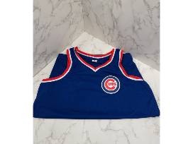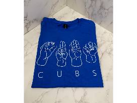 Cubs sign language shirt from the 2024 Deaf Inclusive Cubs Night, size Medium. Cubs/Budweiser baseball hat and basketball jersey, size Medium. Chicago Cubs collapsible Cubs/Hi-Chew duffle bag.