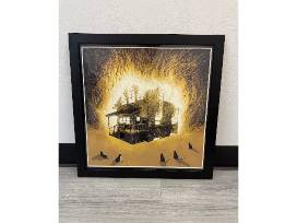 Burning House print by local artist Justin Santora in an 18"x18" frame.