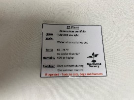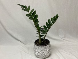 ZZ plant in white decorative ceramic pot and a $50 gift card to Greenwood Nursery.