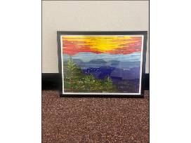 "After the hurricane, this was my tribute to the area. It's made from strips of cut paper glued to a canvas, this print will remind us to keep Western Carolina in our thoughts as they rebuild" Janice Wiess