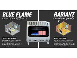 This Blue Flame 20,000 BTU Liquid Propane Vent Free heater is the perfect supplemental heating solution even on the coldest days. This heater is conveniently equipped with a thermostat for superior control of the temperature in your space. Also, with a battery powered electronic ignition, starting it is a breeze - battery included. This unit can be permanently mounted to the wall or securely fastened to the floor with included mounting brackets and fasteners. A clean burning blue flame tube burner uses the natural convection of the burn to circulate warm comfortable air. With a factory standard Oxygen Depletion Sensor (ODS), rest assured this heater will provide you with years of comfortable and safe heat.