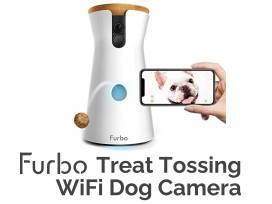 - Fun TREAT TOSSING: TOSS a treat to your dogs via the free Furbo iOS/Android app. Fill it with your dogs' favorite treats & play a game of catch.