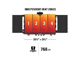 - Spacious 768 sq in cooking space with four independently controlled heat zones and 38,000 BTU's