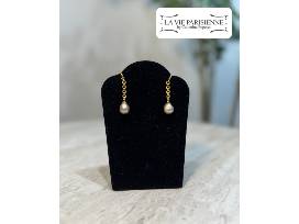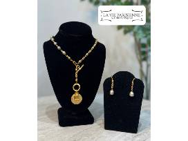 Swarovski Patina Pearl Jewelry Set from La Vie Parisienne. Add timeless elegance to your collection with this stunning La Vie Parisienne jewelry set, featuring a Swarovski Patina Pearl + Chain Necklace paired with matching Swarovski Patina Pearl + Chain Drop Earrings. Handcrafted in France, La Vie Parisienne pieces are known for blending Parisian vintage design with modern artistry. The luminous patina pearls and delicate chain details create a versatile set that transitions effortlessly from day to evening, making it a perfect gift or a chic addition to your own wardrobe.