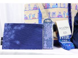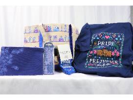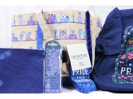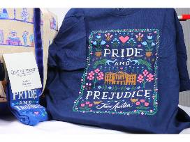 In this bag you will receive a large tote, a Pride & Prejudice bookmark, a Pride & Prejudice pouch, a pair of Puffin in Bloom socks and a medium T-shirt.