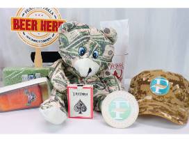 Bid on this gift basket with a money bear and gift cards donated by longtime donors Feather Falls Casino.