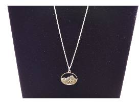 This silver pendant is a view of Mt. Shasta from a Redding perspective.