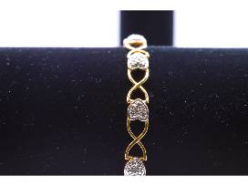 Bid on this 18K yellow gold over sterling silver tennis bracelet with 1/8 ctw of genuine diamond melies.