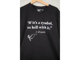 This exclusive "Not a Symbol" t-shirt (Size L) from Red Letter Apparel features Flannery O'Connor's powerful quote-"If it's a symbol, to hell with it"-boldly worn by Jonathan Roumie in The Chosen. This exact shirt is signed by Roumie himself, making it a unique collector's item for any fan of the series or admirer of his work.
