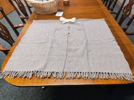 Cozy button-front shawl - A soft, neutral wrap with hand-knitted collar and wooden buttons for warmth and charm.