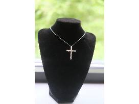 An exquisitely crafted diamond cross set in 14K white gold, suspended from a 14K white gold chain. The simple and elegant design contains 16 round brilliant cut diamonds weighing a total of 2.90 carats! These diamonds are superbly cut for maximum brilliance and are nearly colorless. Their outstanding cut, color, clarity and carat weight will be sure to dazzle! The diamonds are CVD lab grown.
