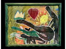 Professionally framed piece by Wissahickon third grader Devon D. made in the style of pioneering street artist Jean-Michel Basquiat. Measures approximately 14x18. Signed by the artist!
