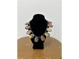 Turn heads with this bold and beautifully handcrafted necklace featuring large teardrop-shaped stones in earthy hues of pink, yellow, and gray. Each unique stone is paired with delicate spacer beads, creating a striking balance between elegance and natural charm. A perfect statement piece to elevate any outfit!