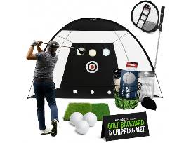 Perfect your game with this all-in-one golf training package! Whether you're just starting out or a seasoned golfer looking to sharpen your skills, this set is designed to bring the course to your backyard or favorite indoor spot. It includes a high-quality golf practice net suitable for all weather conditions, a sturdy metal range basket that holds up to 50 balls, a pack of 12 golf balls, and a precision golf putter to fine-tune your short game. Plus, take your practice to the course with a certificate for two 18-hole green fees at Songbird Hills Golf Club-valid weekdays anytime and weekends after 1:00 PM.
