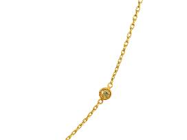 1Look like a million bucks with this ladies 14k rose gold necklace with (10) round eyeglass bezel diamonds by the yard weighing 1.00 cts measuring 18" with lobster lock from Shelle Jewelers