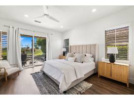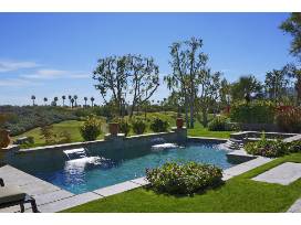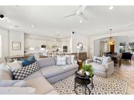 Situated on the 7th hole of The Nicklaus Tournament Course where you can enjoy double fairway views. This is a place to entertain and relax with your own extra- large, pebble tech salt pool and spa overlooking the golf course and a covered open air outdoor room. The backyard has a BBQ, 10 chairs, including recliners and a large covered outdoor room. This designer decorated single- story home has an open floor plan offering a seamless transition between the entry & dining room to the kitchen & living room creating multiple areas for entertainment and socializing. Special features include a large kitchen with quartz countertops, an oversized master suite with a custom tiled shower, and Cal King Beds in every room.