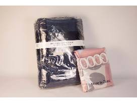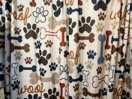 Decorate your bath with this fun pawprint, dog bone, woof shower curtain and dry off with this matching blue three piece towel set.