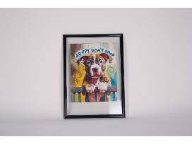 Waiting Rescue Pup - This Dean Russo 4 inch x 5 inch autographed and limited edition print is floated in a 5 inch x 7 inch frame. Number 23 of 30 prints
