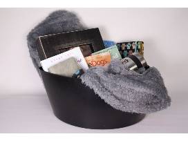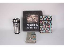 Snuggle into the soft gray throw while you sip on your coffee and journal or read one of four wonderful dog-themed books! Dog-themed wristlet and wooden "You can't buy love but you can rescue it" picture frame.