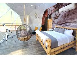 53 Night Stay at Clear Sky Resort Grand Canyon in a Family Sky Dome for (5) with 1 queen bed on the lower floor and 1 queen plus 1 twin bed in the loft; Daily Happy Hour; Stargazing with Telescopes; Live Music; Nightly S'mores.