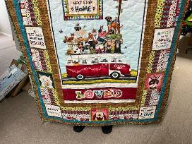 This adorable "Rescue" quilt is 41 inches by 58 inches and the purfect size to snuggle in on a cold night!