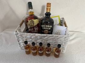 This Buffalo Trace Basket contains one 750 ml bottle of Bourbon and one 750 ml bottle of Buffalo Trace Bourbon Cream with samples of Chris Stapleton's Traveler's Whiskey made by Buffalo Trace is sure to wet someone's whistle!