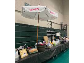 - Loverboy brand Patio Umbrella & stand, donated by anonymous