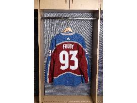 Jean-Luc Foudy Colorado Avalanche Team Issued Home Jersey. Size 54.