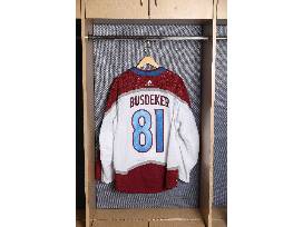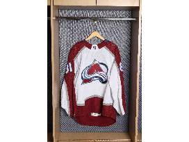 D.J. Busdeker Colorado Avalanche Team Issued Road Jersey. Size 56.