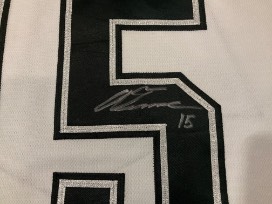 Bid to win a #15 Alex Turcotte signed, game worn jersey featuring a Los Angeles Fire Department patch. All proceeds from this auction will be donated to The Red Cross, The LA Fire Foundation, Cal Fire Foundation and Eaton Canyon Fire Relief and Recovery Fund.