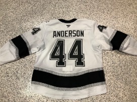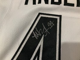 Bid to win a #44 Mikey Anderson signed, game worn jersey featuring a Los Angeles Fire Department patch. All proceeds from this auction will be donated to The Red Cross, The LA Fire Foundation, Cal Fire Foundation and Eaton Canyon Fire Relief and Recovery Fund.