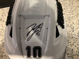 Bid to win a #10 Tanner Jeannot game worn helmet featuring a Los Angeles Fire Department patch. All proceeds from this auction will be donated to The Red Cross, The LA Fire Foundation, Cal Fire Foundation and Eaton Canyon Fire Relief and Recovery Fund.