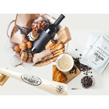- Wine Basket featuring local wines and branded DHS wine glasses along with a handmade charcuterie board with the Dominican crest.