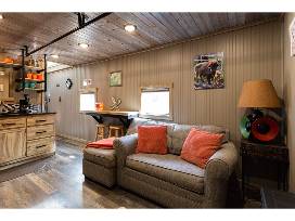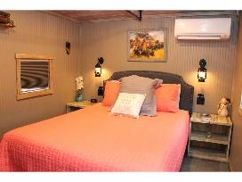 Your caboose will have 1 queen bed, 1 full-size bed, 1 twin sleeper sofa, full kitchen, full bathroom with heated tile floor, linens & towels, 2 satellite TVs, free wifi, and pets welcomed (Pet fee if applicable is $60 + tax)