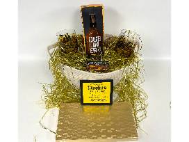 Celebrate with the Limited Release Dubliner Whiskey drunk from a pair of amazing Amanda Lee hand painted whiskey glasses while noshing on some Sarris Chocolate.