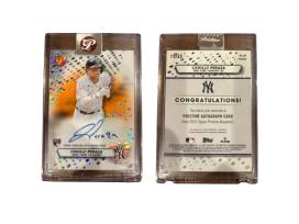 - 2023 Topps Pristine New York Yankees Oswald Peraza Rookie Auto Orange Refractor 19/25 (valued at $50).