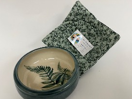 Hand Painted Mangia Ceramic Bowl with matching Koozie.
