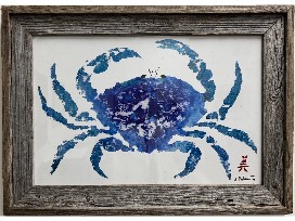 FishAye Trading Co., Driftwood Framed Blue Crab, Gyotaku Fish Art