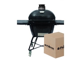 The Round Charcoal Primo offers the same quality ceramic in a round cooking area. Grill, bake, roast, or smoke any food. The All-In-One package comes with the grill head, an ergonomic handle, cradle stand, side tables, ash tool, and grate lifter. Includes a basket of grill accessories and a $100 gift card to Doziers.