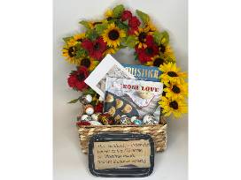 Bring home this loaded basket from the best Pierogie Makers in the 'burgh! The basket from St. Vladimir's Ukrainian Catholic Church is filled with a gift certificate for 5 dz. pierogies, a genuine St. Vladimir "Pirohi Eater" apron, a sunflower & poppies wreath, Easter eggs, 2 books and a CD of Easter songs.