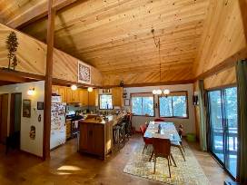 This is a 3 bedroom (2 queen rooms, 1 kids' bunk room; plus a bonus queen futon upstairs in the loft), 2 bathroom cabin in Tahoe Vista that is located ~10 minutes away from both Kings Beach and Northstar, and ~20 from Truckee and Tahoe City. Stunning Sand Harbor State Park is also within a short drive, and the Tahoe Vista Treetop course is just at the bottom of the neighborhood. You can access hiking, running and mountain bike trails that link up to the Tahoe Rim Trail, Pacific Crest Trail, and all sorts of local neighborhood trails right from the front door. Or stay home, play ping-pong, and catch up on your reading or Netflix. The cozy cabin makes entertaining kids as well as adults easy, as it comes outfitted with toys, activities and books catering to elementary-age kids.
