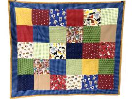 Treat a new parent and baby with this adorable 34.5" x 40" handmade, blue and orange animal themed baby quilt. Made with love, one side is fleece and one side is quilted.