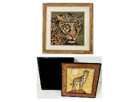 Big cat enthusiasts will enjoy these art pieces! The 12" x 12" framed cross-stitch and an 8" x 8" wooden box featuring a cheetah capture the grace and elegance of this magnificent animal.